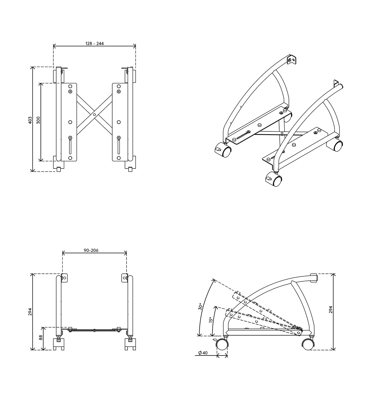 • Maximum monitor dimensions: Height 850 mm